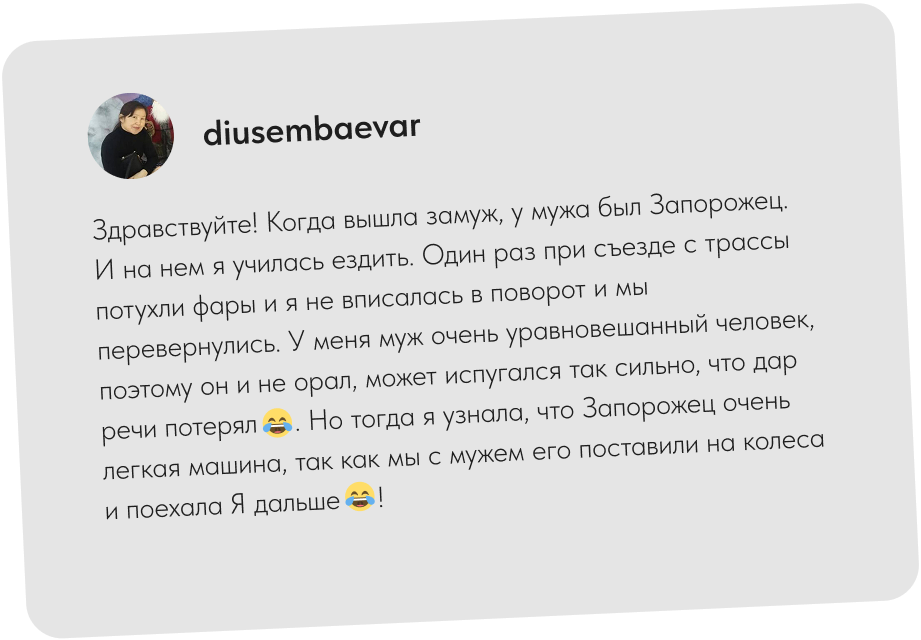 «Если раньше женщин за рулем было мало, и отношение к ним было скептическим, то сейчас ситуация меняется. Их становится больше, и мужчины привыкают. Более того, женщины уже активно участвуют в автоспорте и доказывают, что могут соревноваться наравне с мужчинами. И, считаю, не стоит равнять всех под одну гребенку, все-же большинство водителей вежливые и адекватные, всегда уступят дорогу, а также придут на помощь женщине за рулем».